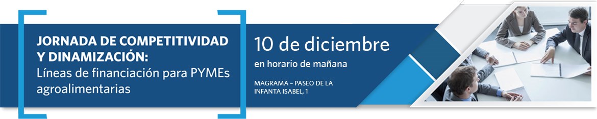 El Ministerio de Agricultura, Alimentación y Medio Ambiente (MAGRAMA) junto con la Federación de Industrias de la Alimentación y Bebidas (FIAB) organizarán una jornada taller sobre financiación, bajo el título "Competitividad y Dinamización: Líneas de financiación para PYMEs agroalimentarias", en la que se desgranarán las líneas de financiación que el Estado pone a disposición de las empresas para mejorar y crecer dentro de un entorno competitivo cada vez más global y dinámico.